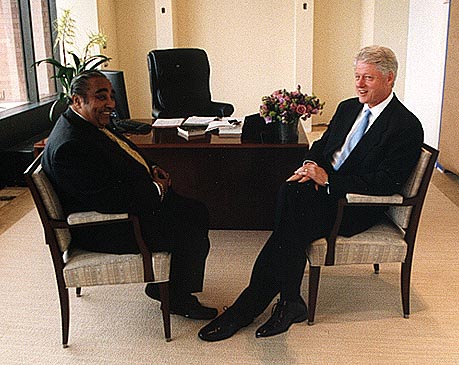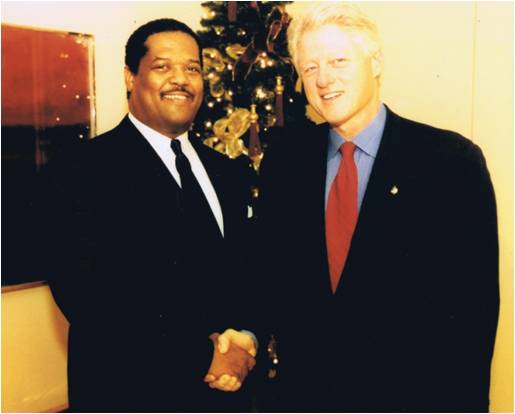 President William J. Clinton congratulates Mr. Harley on a job well done on his new office space.