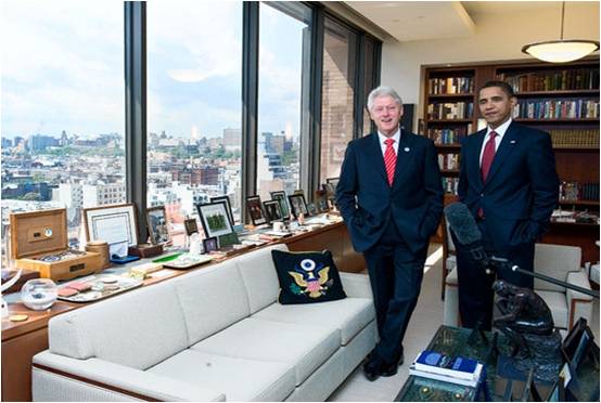 Former President William J. Clinton and President Barack Obama at the Clinton foundation's office in Harlem.