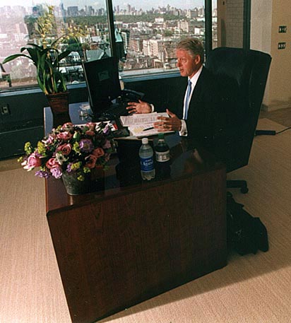 President Clinton test-fit’s his new office.